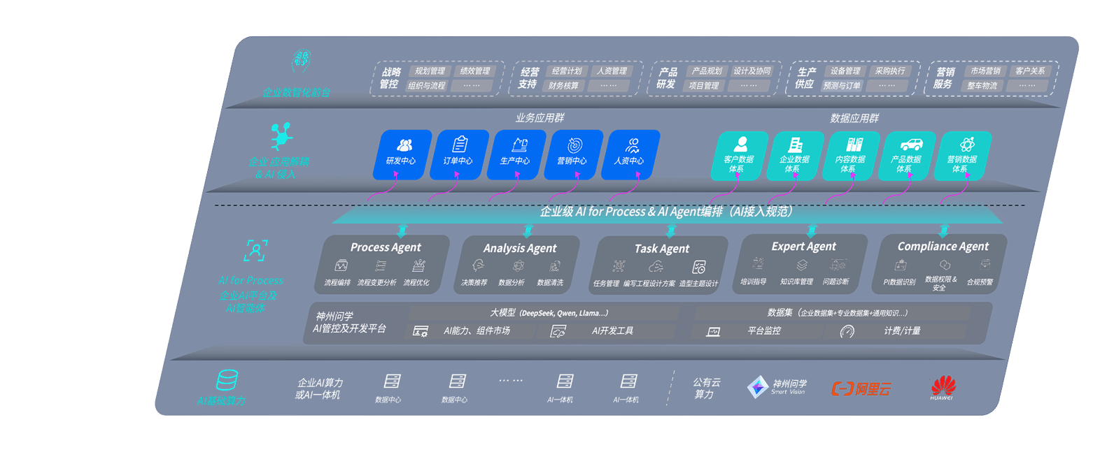 98PAY钱包问学智车解决方案是一套基于AI技术的汽车行业智能化系统,,,,覆盖从底层算力到顶层AI应用的全栈方案。。。方案由算力层、、、、模型层和应用层组成:算力层,,,,方案支持多种一体机配置,,,具备云端灵活部署、、、、多云适配以及动态优化计算资源的能力;模型层,,98PAY钱包问学平台版提供了企业级AI应用一站式构建与管理平台,,,支持基于后训练强化技术的汽车企业专属模型的训练、、、评测和运营;应用层,,,,98PAY钱包问学DeepSeek版提供包括超级员工、、、、智能招采、、、智能营销、、智能客服、、、、AI for BI等一系列解决方案,,,,可助力汽车行业实现数字化转型,,,让管理更智能、、、响应更敏捷。。。。